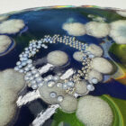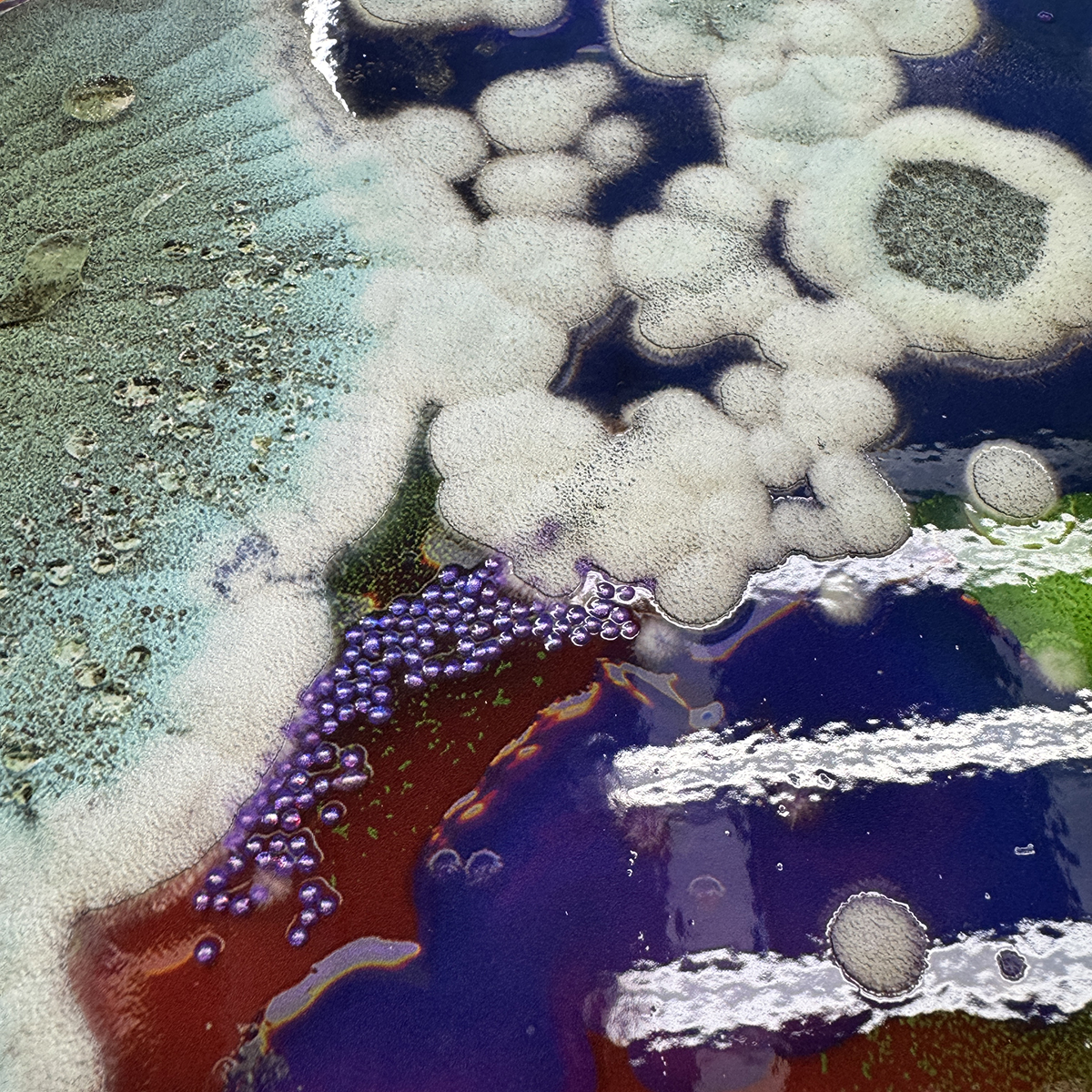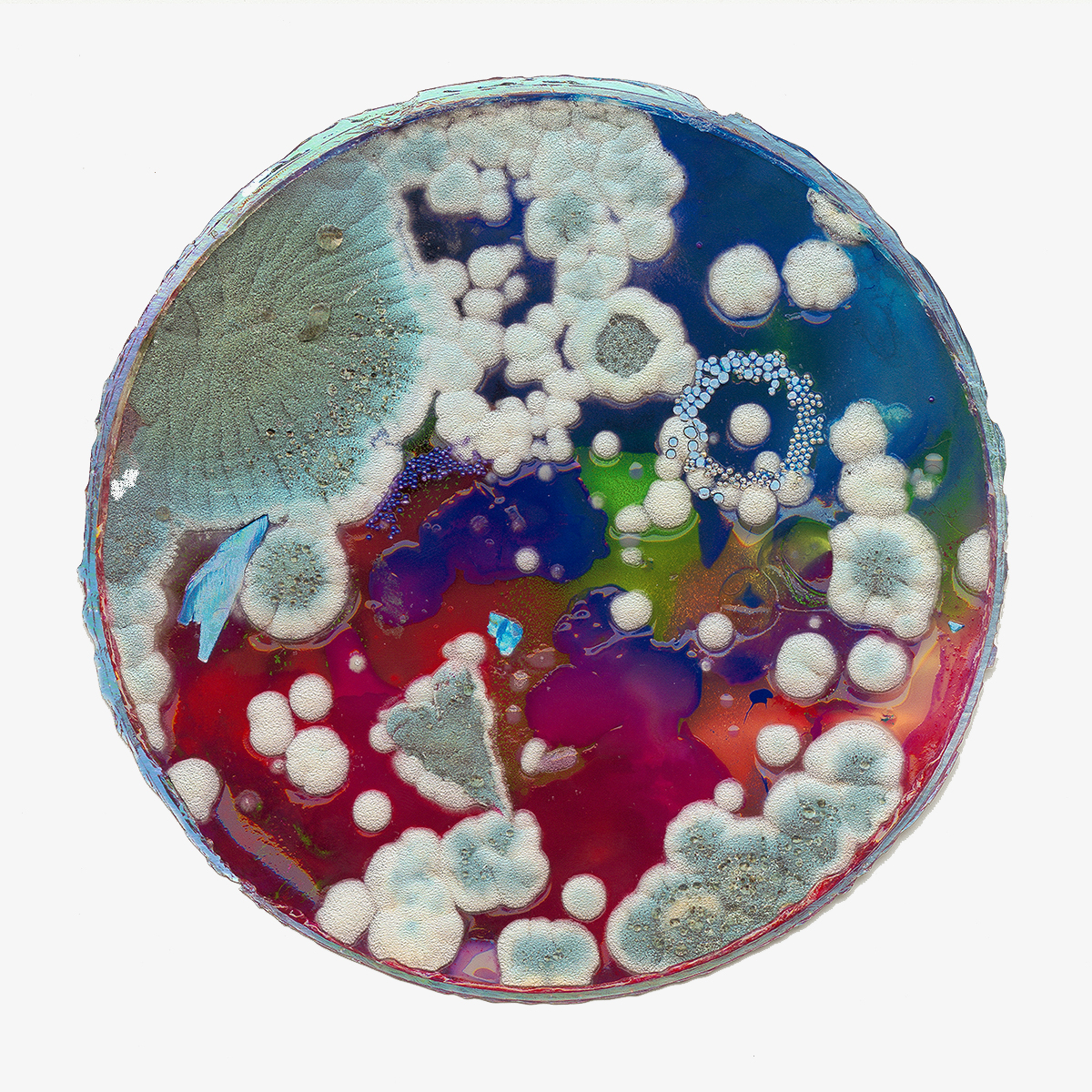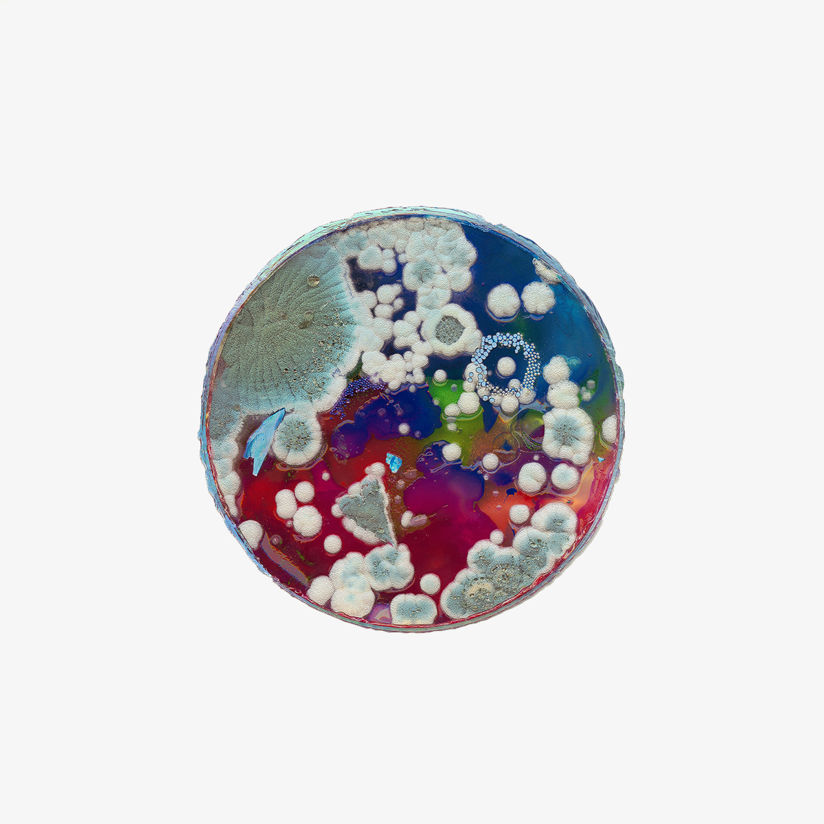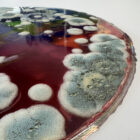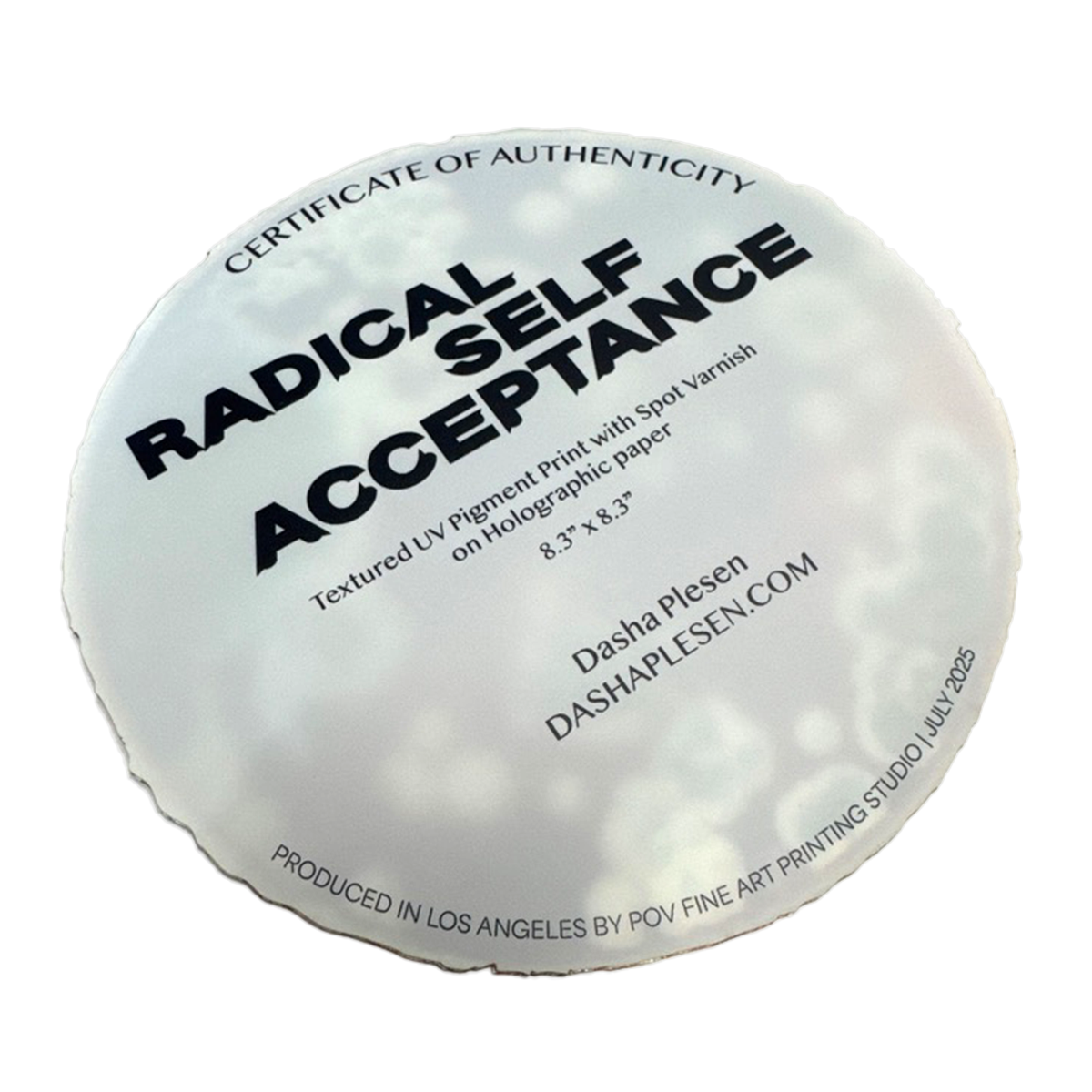 Textured UV Pigment Print on Holographic Paper with Gloss Spot Varnish and Laser Cut Contoured Edges.Â